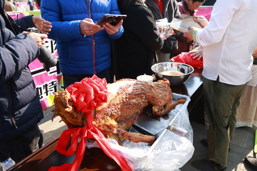 张桥羊肉广场上,直径约2米的“天下一品羊”大锅前排起长队,氤氲香气弥漫空中,再现明代戚家军“千人锅”烹羊宴将士的盛况。不少市民围拢在锅边,一边等待开锅,一边感受着热气驱散冬寒的暖意。