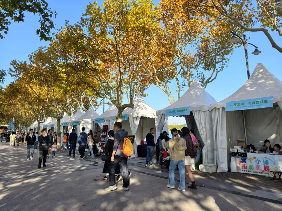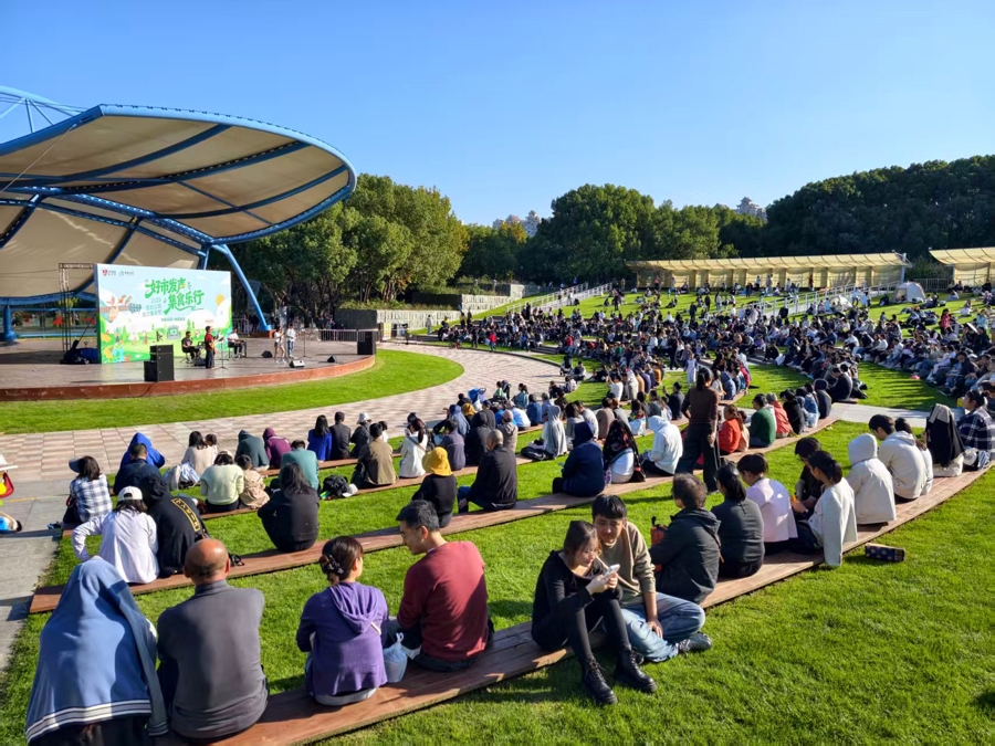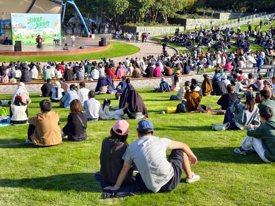 坐在飘满梧桐叶的草坪上,听着现场演唱,看着斑斓秋景。临湖边,就是非遗手作和进博好物市集……今天,世纪公园“好市发声·集食乐行”如期举办,游客在音乐的陪伴中,逛市集赏美景,享受着秋日惬意暖阳。