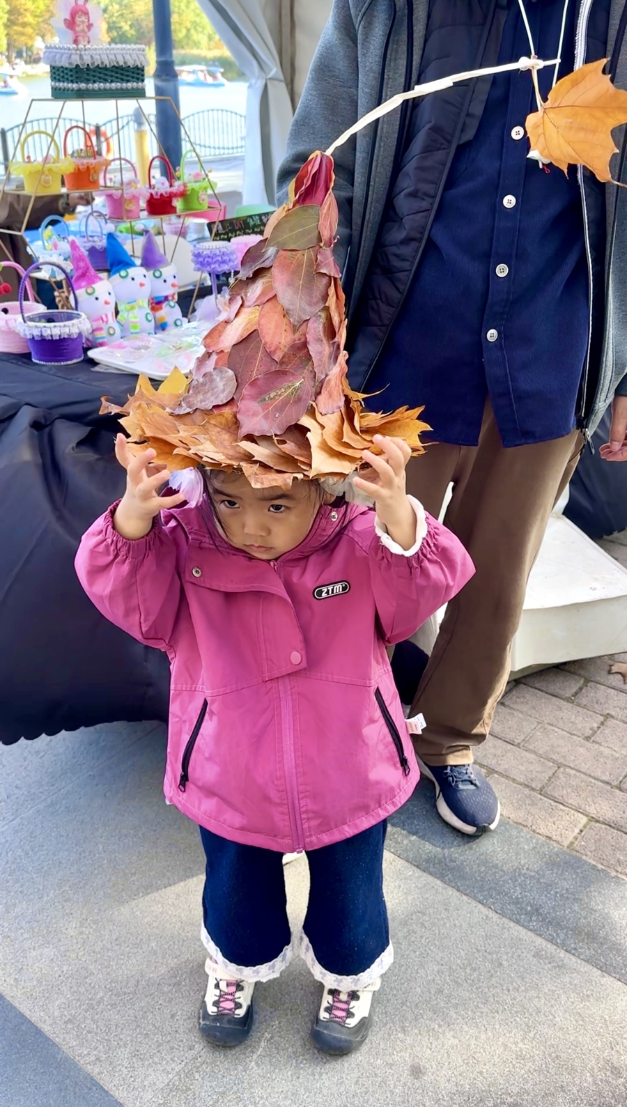 美丽的秋景也给了市民很多“赏秋”的创意。新民晚报记者看到,一对父母用纸板箱、奶茶袋子、双面胶和花了一下午捡拾的落叶,做成了一顶漂亮的“秋叶帽”,成为小女孩头上独一无二的“王冠”,引来路人阵阵艳羡。“从网上学的,别人是银杏帽,我们的是彩叶帽。这周树叶变色还不是最好看,等过几周再来做一顶更漂亮的!”妈妈笑着说。